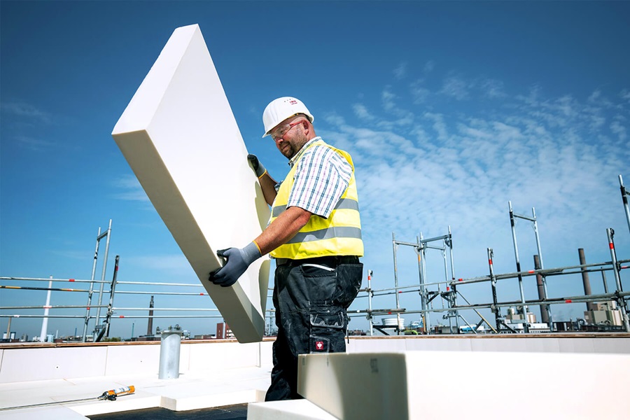 Covestro's new climate-neutral* MDI is used in rigid polyurethane foam insulation elements for highly efficient building insulation.