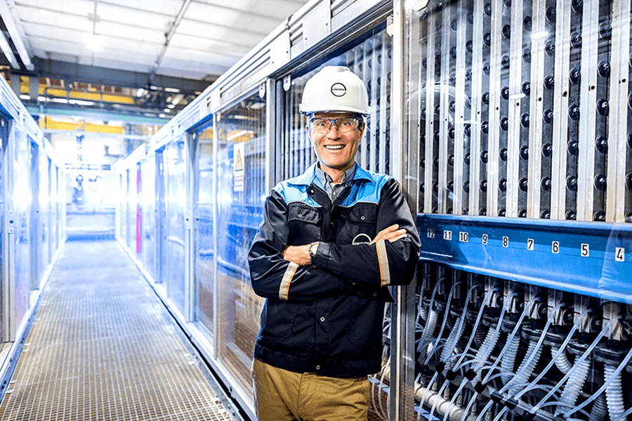 With more than 7,500 electrolysis elements, Covestro produces around 850,000 tons of chlorine annually in NRW, along with the by-products caustic soda and hydrogen. Digital measuring systems continuously monitor the cell voltages of each individual electrolysis element, ensuring smooth production around the clock. In this way, even the smallest deviations from the specified values are recorded in a fraction of a second and transmitted to computers via high-performance fiber optic cables.