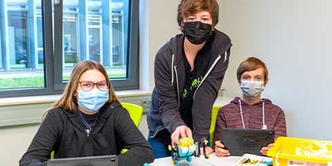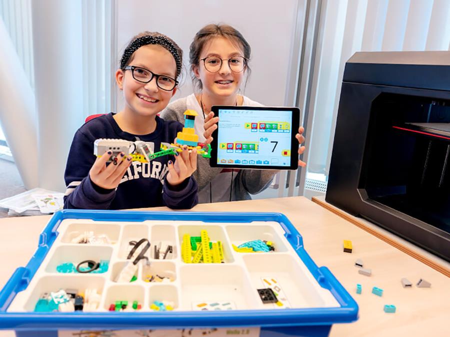 This allows them to program Lego robots, for instance, which then automatically move blocks from A to B to load and unload them. Students learn basic digital skills and more challenging programming abilities in a entertaining manner. Teachers also benefit from it. They can decide which devices and programs are suitable for their lessons.