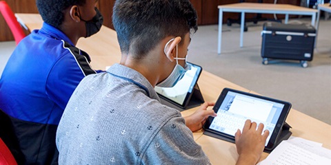 Many pupils at Theodor Wuppermann School in Leverkusen had to leave their home countries because of war. They are supposed to learn German in special support groups within two years. Thanks to a Covestro donation, the school can now use 32 iPads in remedial classes. The tablets help the children to learn German playfully and intuitively at their own pace. This is another important step for the integration in their new environment.