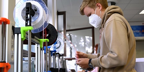 Pupils at Berufskolleg Uerdingen learn how an industrial plant works in project-oriented lessons in the field of automation technology. One of the tasks is to build and program a mini plant, in which ordering, production planning and manufacturing are automatically interlinked. Covestro donated a 3D printer and control elements to get the project started. Pupils can now create further Industry 4.0 mini plants that build on the prototype.