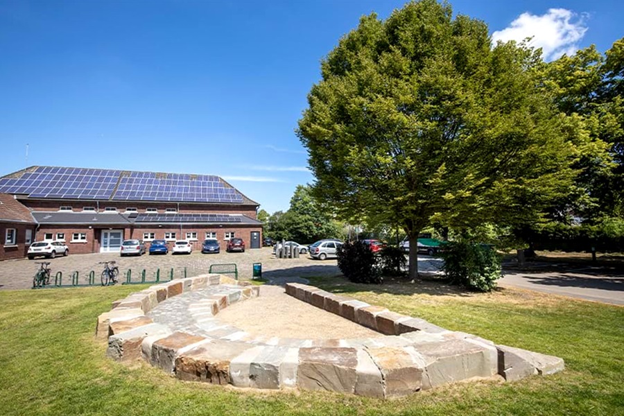 The small amphitheater in Dormagen is a true eye-catcher. Here is where citizens can connect to public Wi-Fi while taking a small break from their everyday life. For city insitutions such as the adult education center, the city library or schools and kindergartens, the amphitheatre is the perfect location to hold events, readings, and games outside. Students, who study at the nearby DINT Forum, can also work on their learning material using their iPads on the stairs of the digital square. Covestro made the construction of the small amphitheater possible with a donation.