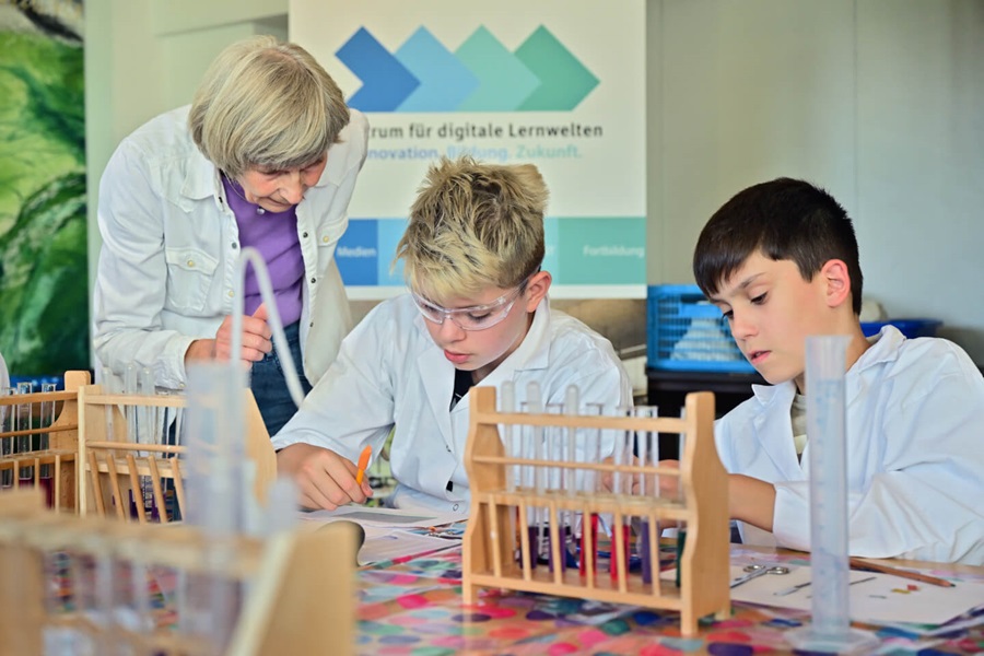 Mobile chemistry kits and “Virtuali-Tee”-shirts from the field of augmented reality are designed to spark young people's curiosity about science. The municipal Center for Digital Learning Worlds (ZfdL) makes these offers accessible to socially disadvantaged young people in particular thanks to the support of Covestro. To this end, the ZfdL also organizes open workshops in Krefeld youth centers.
