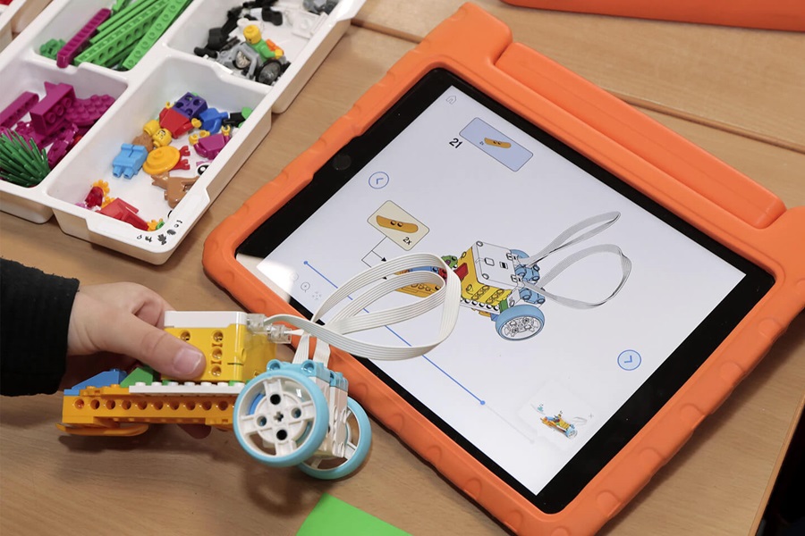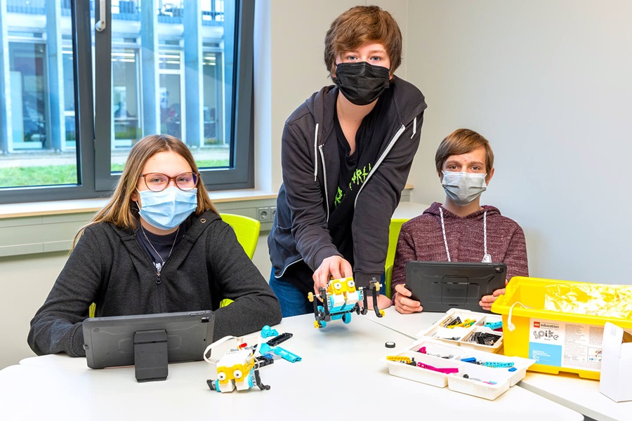 This allows them to program Lego robots, for instance, which then automatically move blocks from A to B to load and unload them. Students learn basic digital skills and more challenging programming abilities in a entertaining manner. Teachers also benefit from it. They can decide which devices and programs are suitable for their lessons.