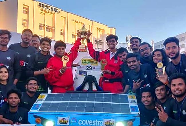 Covestro India is committed to design such innovative, sustainable solutions that will make this world a brighter place. Sponsoring the team for fabricating this eco-friendly car reflects our philosophy of Sustainability. The team participated the Electric Solar Vehicle Championship 2019 and bagged 3 recognitions as below:
