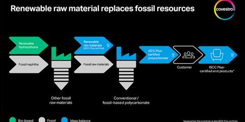 The gradual switch to alternative raw materials from renewable sources is part of the company-wide circular economy strategy. With the ISCC Plus mass balance certification, Covestro is demonstrably a step closer to its vision of climate-neutral production. After all, the use of alternative raw materials is an important step toward reducing its own CO₂ footprint.