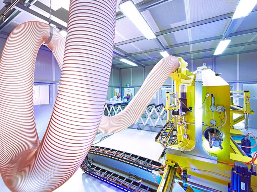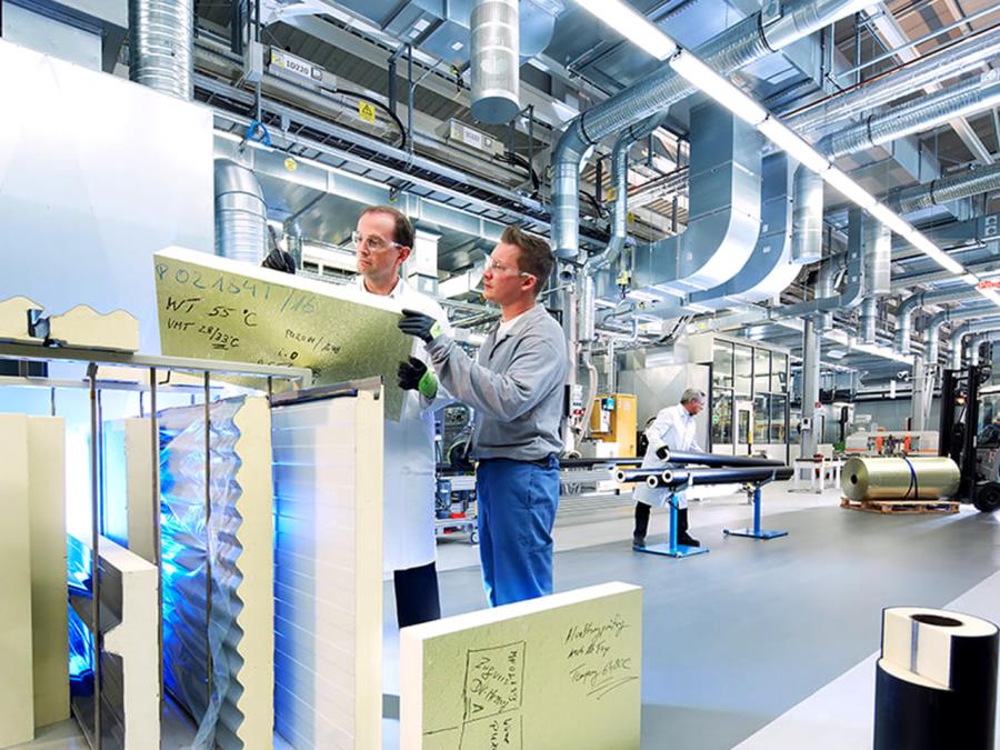 Among other things, the technical center houses continuously operating equipment for the production of insulation panels and "sandwich panel" elements. Rigid PU foam is a very high-performance insulation material and is ideal for reducing energy consumption and CO₂ emissions from buildings. This does not only protect the environment, it also protect fossil resources.