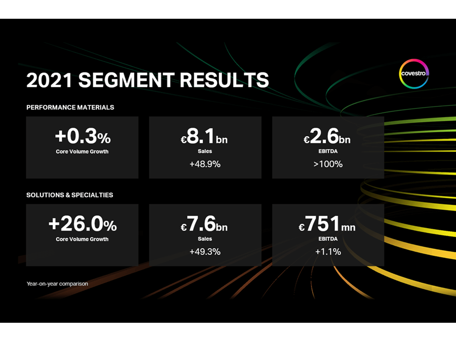 “We can look back on an extremely successful year marked by high demand. Not least, that is reflected in the fact that we were virtually sold out over large stretches of 2021,” said Dr. Thomas Toepfer, CFO of Covestro. “In the past year we have created the foundation for further sustainable growth with our new Group structure.”