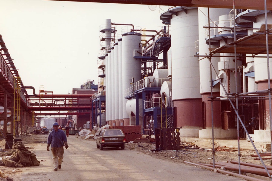 The 1980s mark the beginning of the growth stage at the Covestro site in Brunsbüttel. Source: Bayer AG, Bayer Archives Leverkusen