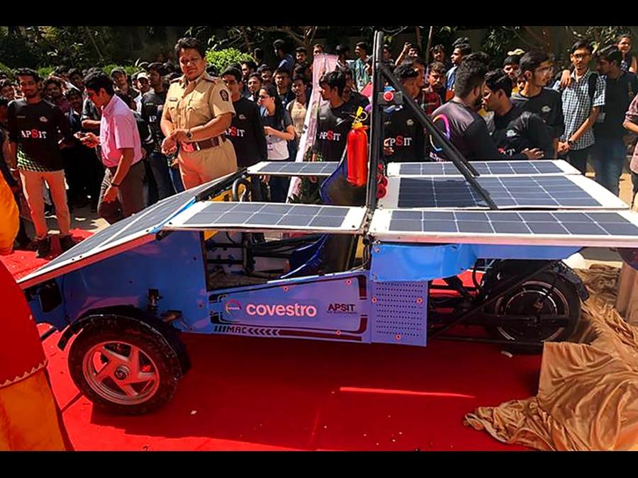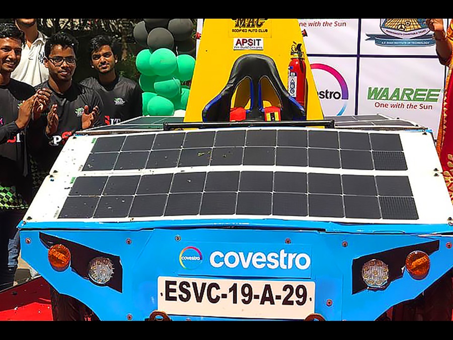 Covestro supported this initiative with our solutions. The outer body of the car is made from raw material polycarbonate from Covestro which provides the stability and strength and weighs less than half weight if the car was made of aluminum. This ensures that the car is lightweight and enhances the performance of the car in terms of pick up speed and mileage. The car also features PIR (polyisocyanurate – high performance foam) which is innovated by Covestro and has an excellent fire resistant property. This insulating material provides optimum safety to the driver, protecting it from the heat generated by the battery and its components. The materials prevent spread of fire in case of any mishap.