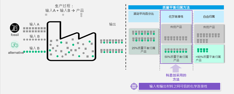 质量平衡方法是一种监管链模型,用于在一个生产系统内同时加工替代原料和化石原料。最终,替代性基础原料的比例可以在簿记基础上正确分配给最终产品。