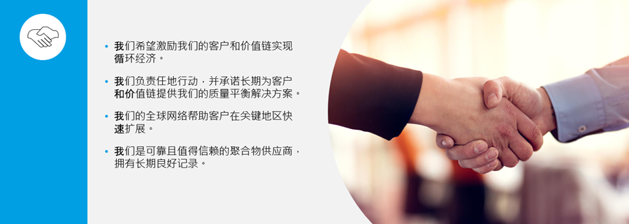 科思创还致力于将质量平衡方法与实际化学过程相结合。这种方法确保关于可持续内容的声明是可信且可验证的,同时促进了可扩展性和对即将出台的监管框架的遵守。更多详情请参见科思创质量平衡立场文件。